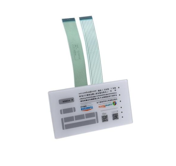 1.Tilpasning og tilpasningsevne: Vores fleksible PVC-membranafbryderknappanel har farver, der kan tilpasses, så de passer perfekt til din ønskede æstetik. Den er designet til alsidige applikationer i kontrolpaneler til smarte hjem, elektroniske vægte, husholdningsapparater og mere. Vi tilbyder en række forskellige overfladebehandlinger, herunder silketryk, sprøjtning, vakuumbelægning og prægning for at opfylde dine specifikke krav. Dette fleksible design er lavet med en række patenterede PET/PC/PVC-film.